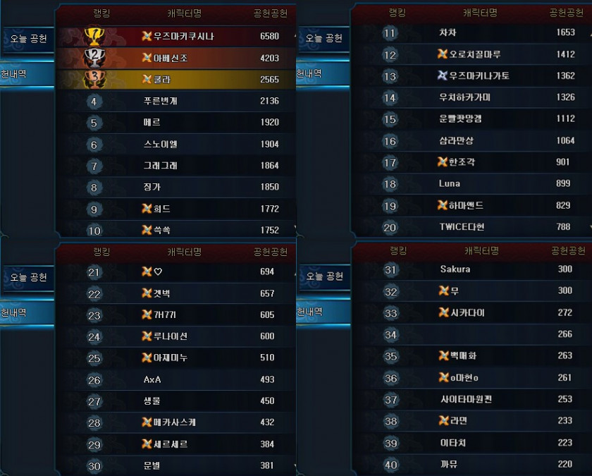 | 쓱쑉 | 1752 | 공헌 | 정예패키지 |