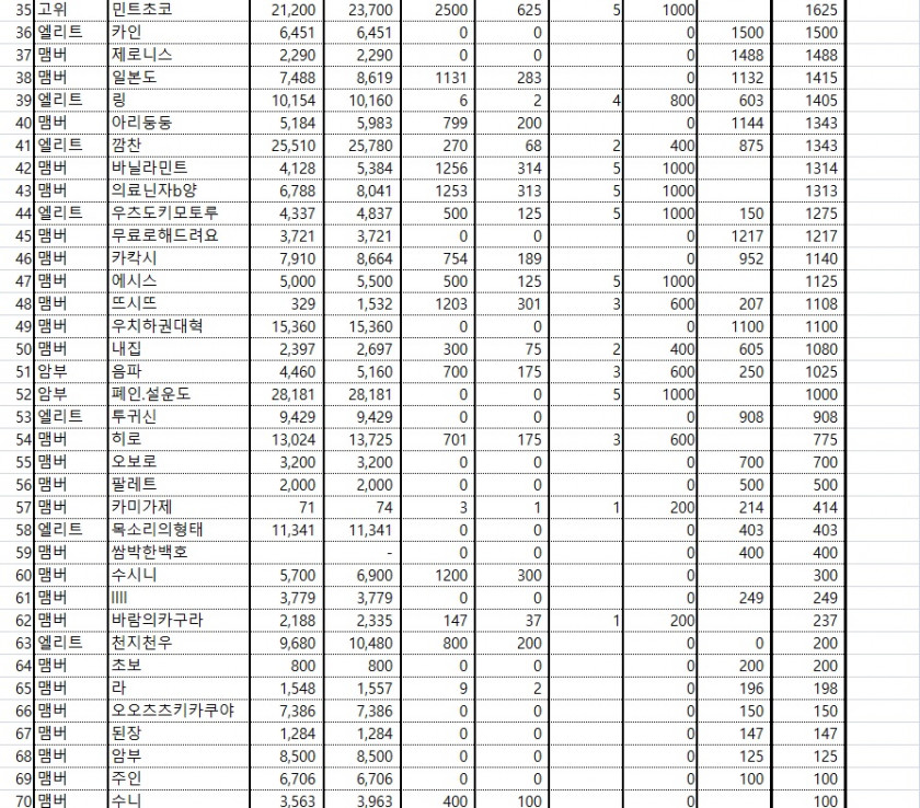 11월 25일 닌대전 보상 내역