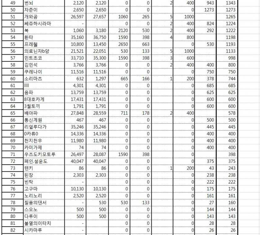 7뤟 28일 닌대보상내역