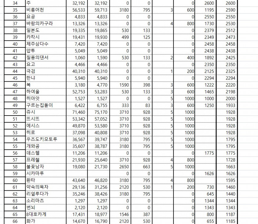 5월5일 닌대보상내역