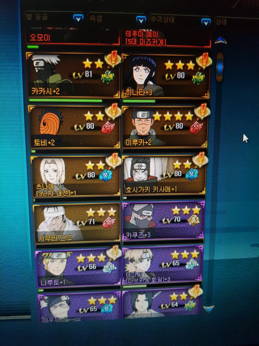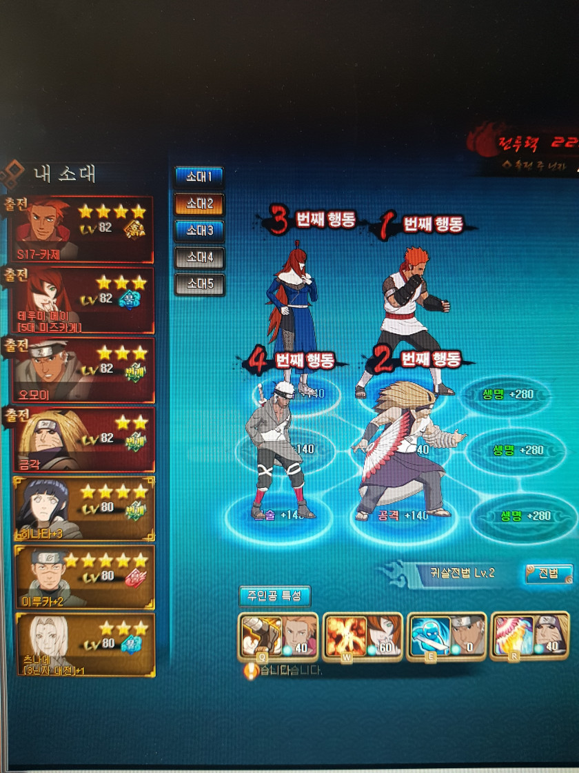 현재 붉은 바위 주인공에 금각, 테루미 메이, 오모이 조합으로 하고 있습니다 (소환수는 야타카라스)