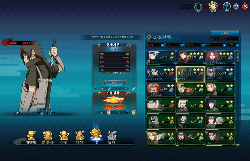 소환수는 아직없으시고, 기분은 캐릭터가셔서 공격,인술 잠재력보시고 더 높은거 플러스하시면됩니다