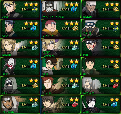 다름이 아니라 이번 봉두 환급 이벤트때 모아두었던 봉두로 다섯카게 상자 뽑기를 해서 몇몇 닌자를 모았는데