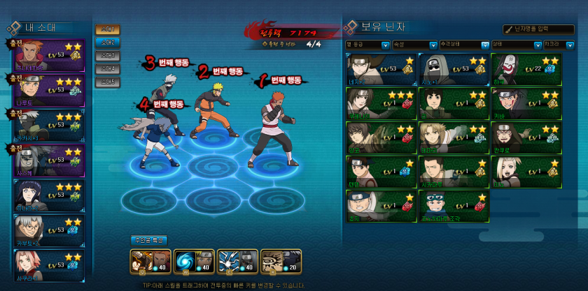 토둔 암권 낙 쓰시고 닌자고양이 모으시면 될 것 같습니다, 이조합은 그대로 두고 사스케도 3성 찍으셔야해요.