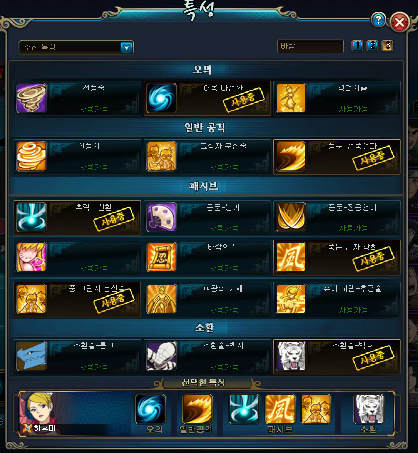 주인공 오의를 대옥으로 해봐서 첨에 사용하려고 했는데 오의를 초기화로 바꿔서 다시 재배치 했어요~