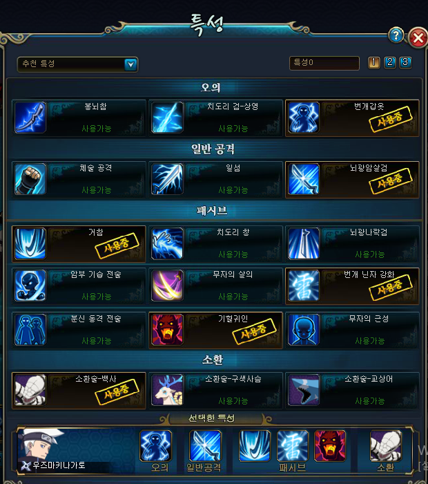 그래서 제가 자주 사용하는 캐릭터는 번개주인공, 사스케,이루카,히나타 입니다.