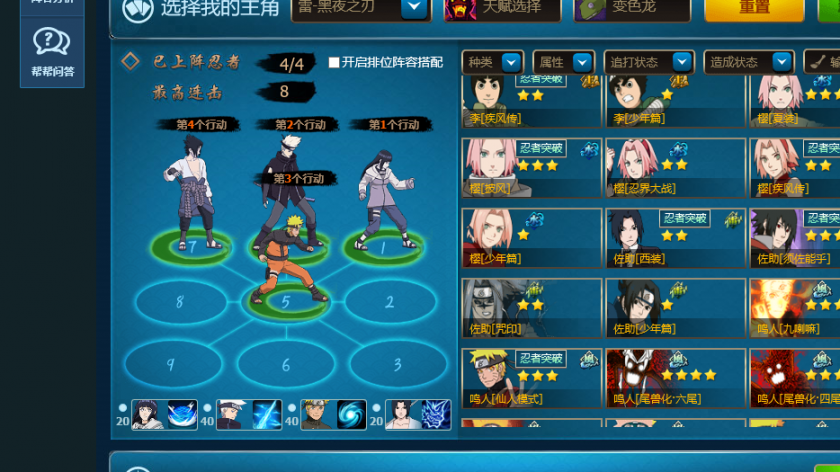 뇌둔, 나루토, 사스케, 히나타 (초반무과금전용덱)