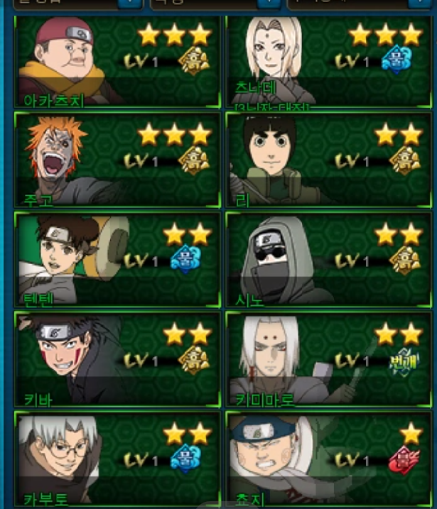 원래는 풍둔 나루토 이루카 가아라 사용중이었어요