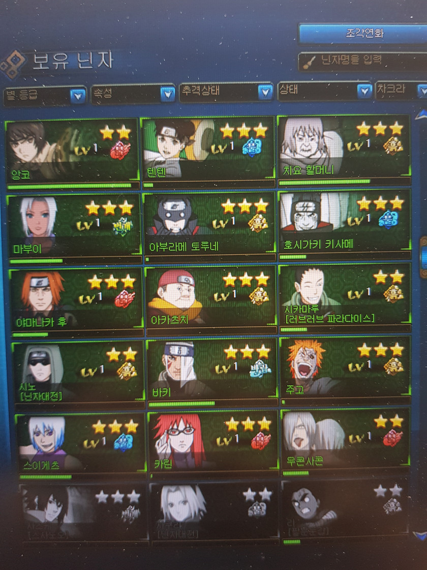 풍둔초반 라인업 몇개+구미호 (히나타,가아라,이루카,닌대테마리,쿠레나이사용)