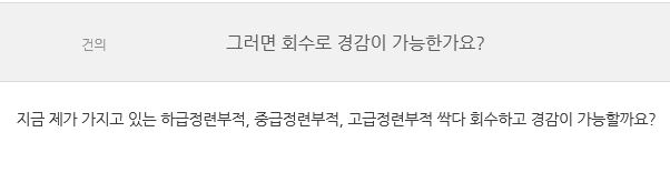 또한 고정부가 없는 상태인데 그냥 정련축복치를 회수해서 경감해줄수는 없는지 문의를 넣었습니다.