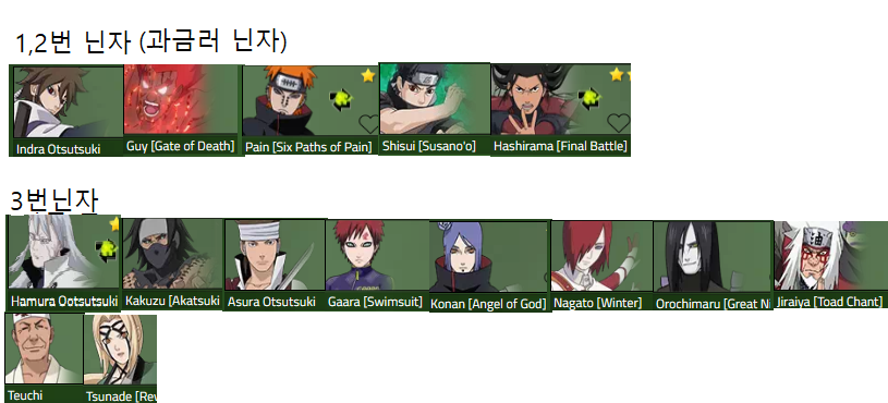 개인적인 취향입니다.아직 스돌전이나 상향전 닌자는 뺐습니다.