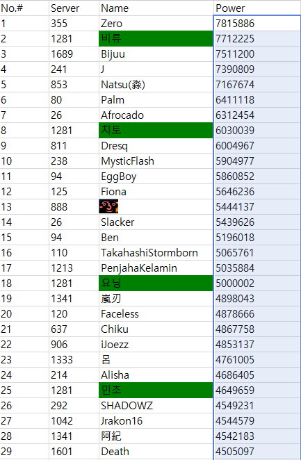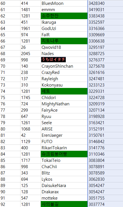 아직 18일자에 생긴 새로운 스크롤 오픈을 하지 않은 유저도있고, 접은 고투력 유저도 있고 누락된 유저도 있을 수 있습니다.