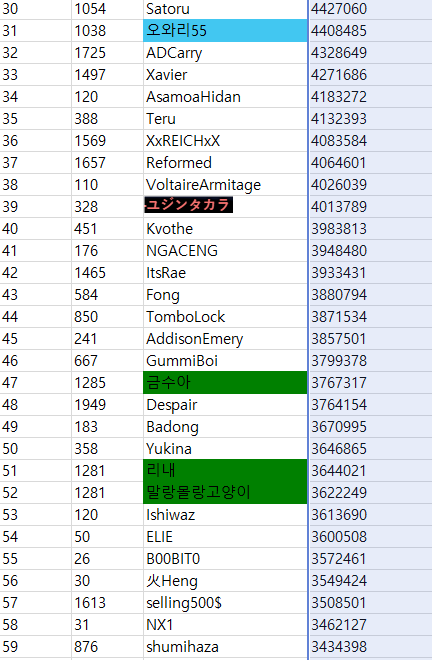 개인적인 호기심으로 3M 이상의 유저만 대강 찾아본것이니 양해 바랍니다!!!