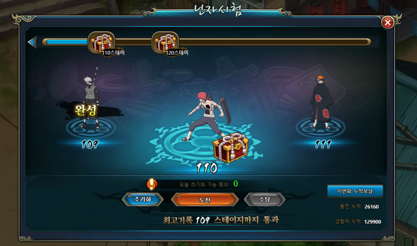 투력이 36000이 넘었는데 왜때문에 닌자시험을 못 깨나 하다가 밀어버렸네요.