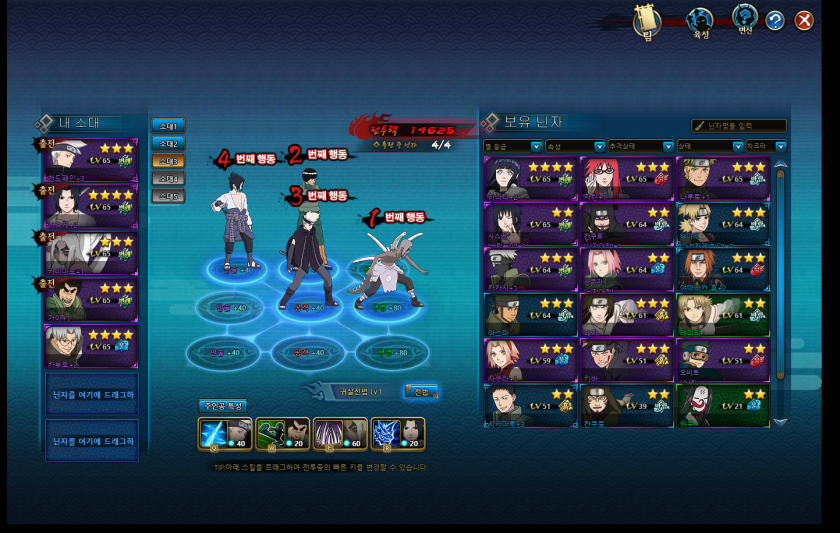 안녕하세요 사루토비 섭 65 뇌둔입니다. 슬슬 무과금으로서 한계가 오는거 같아 방향성과 덱추천 상담 받고 싶습니다. 거대뱀은 아직 없습니다...