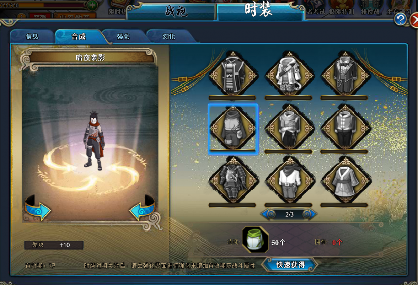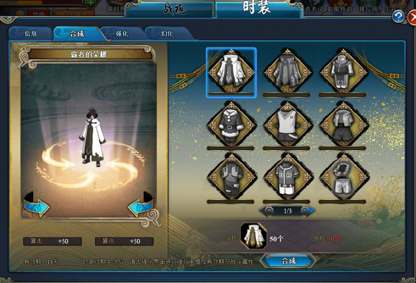 의상은 다른 포인트로 구매 가능하고 의상을 구입하면 업그레이드 해서 능력치를 증가 시켜야 합니다