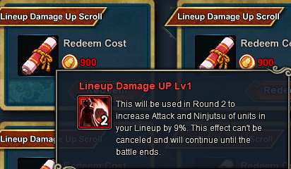 특정 상황를 제외하고 가장 많이 사용하는 스킬 두루마리입니다. 빨간 2턴 데미지업 스크롤이고 경험상 230코인쯤에서 빨간스크롤이 하나 나왔으나 이중 2턴 데미지업이 나올확률은 상당히 낮습니다. 때문에 코인을 모아서 구매하시고 만약 코인모으기 전에 나온다면 다른 2턴 스크롤이나 에센스를 사시는걸 추천드립니다. (개인적으로는 에센스를 구매할 예정입니다.)
