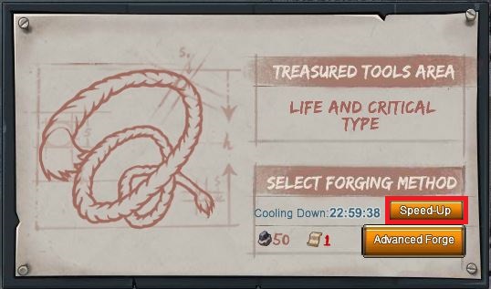 보물도구 제작은 파란색 [Forge] 버튼을 눌러 제작합니다. 이 버튼을 눌러 제작을하게 되면