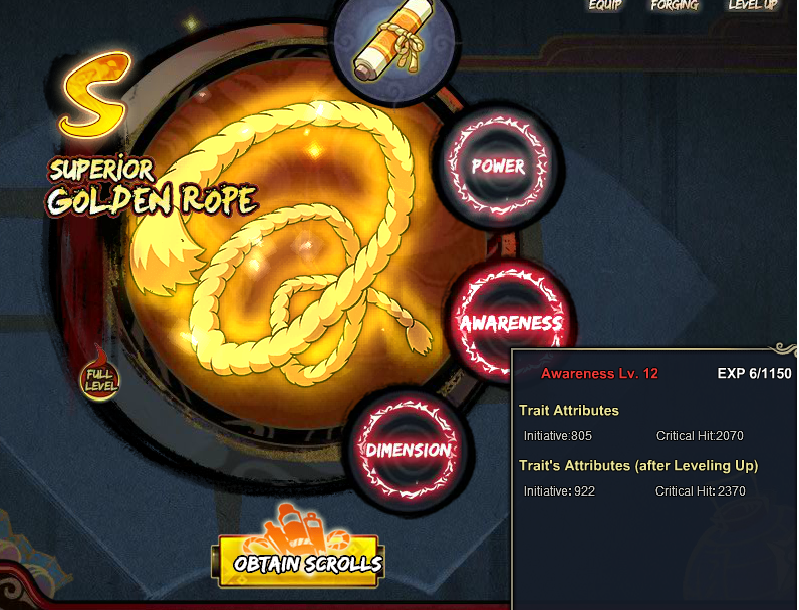 사진속 POWER, AWARENESS, DIMENSION에는 공통적으로 선공이 붙어있고, 아까말씀드린 로프의 능력치가 하나씩 붙어있습니다.