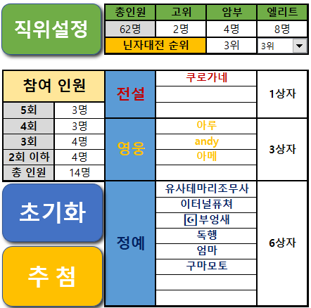 19.01.12 닌자대전 보상 분배 내역(크로스)