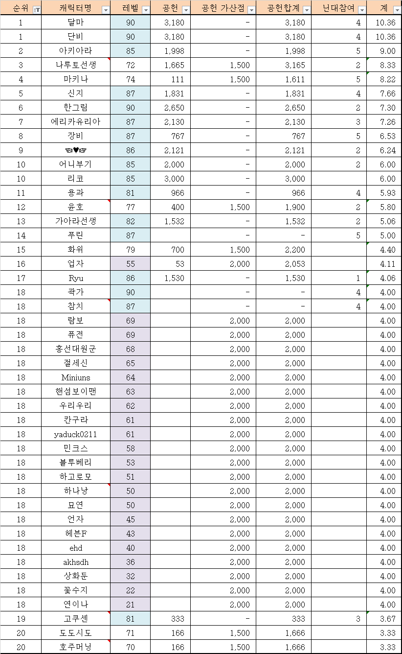 공헌점수를 다 채우셔도 닌대참여횟수가 0이면 분배를 할수없습니다