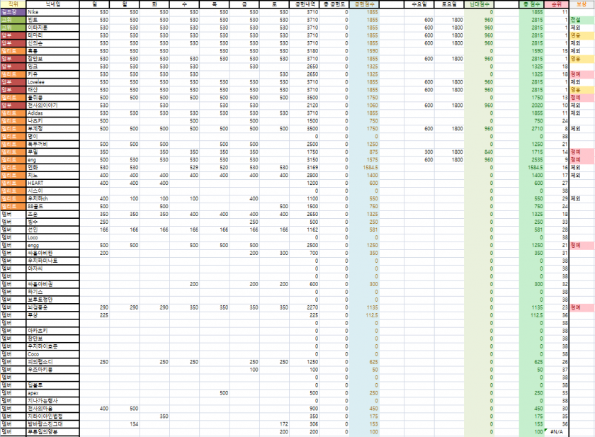 제가 닌대 1~3번 참석한분중에 어떤분이 수요일 참석하고 토요일 참석한지 체크를 못했네요.
