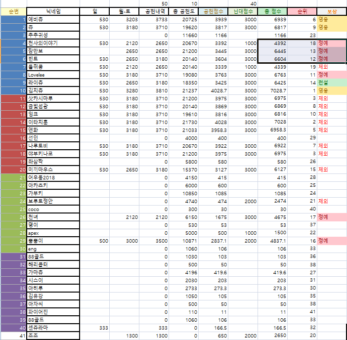 * 목록은 보상기준에 적합한분들만 기록하였기에 자기닉네임이 없는분들은 기준에서 탈락되었습니다.
