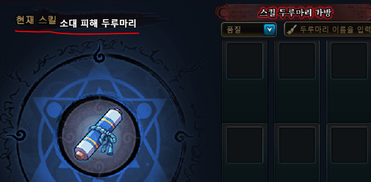 보물템 장착은 보물템을 캐릭터에게 장착하는 곳이 아닌 스킬 두루마리를 장착하는 곳입니다.