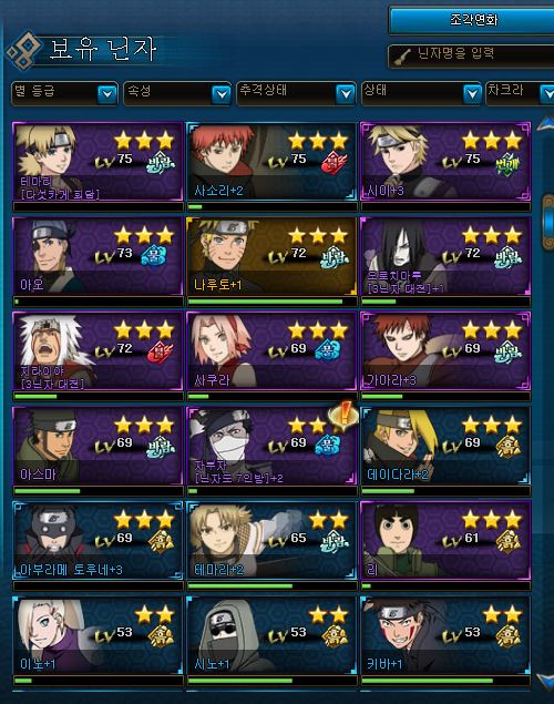 제가 뇌둔과 풍둔을 주로했어서 나머지속성은 잘 생각이 안나네요. 저덱을 쓰기 싫으시면 조금더 고민해보시고 쓰고싶은닌자로 쓰세요. 엥간해선 소환수만 있다면 콤보연계는 다 됩니다.