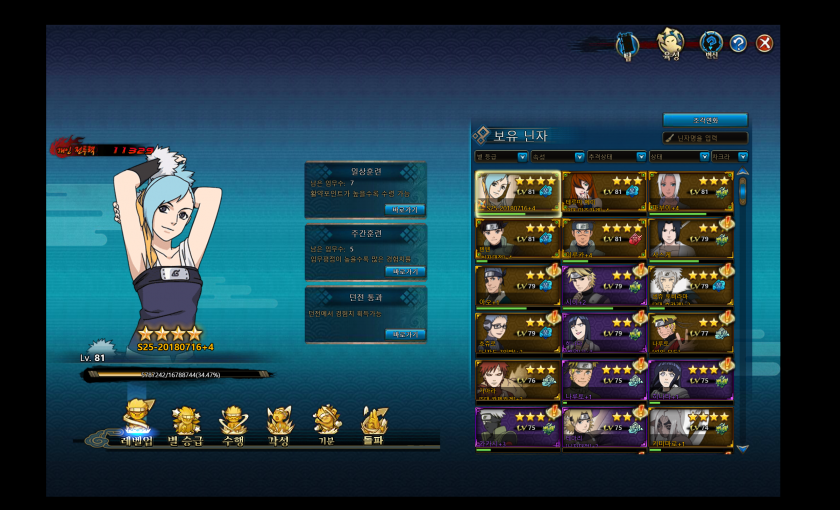 캐릭터들 보시고 최상의 조합 추천부탁드립니다.