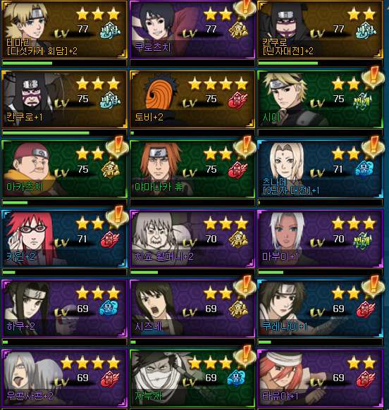 뇌둔,다루이,히나타,사스케 무자 조합 11콤보
