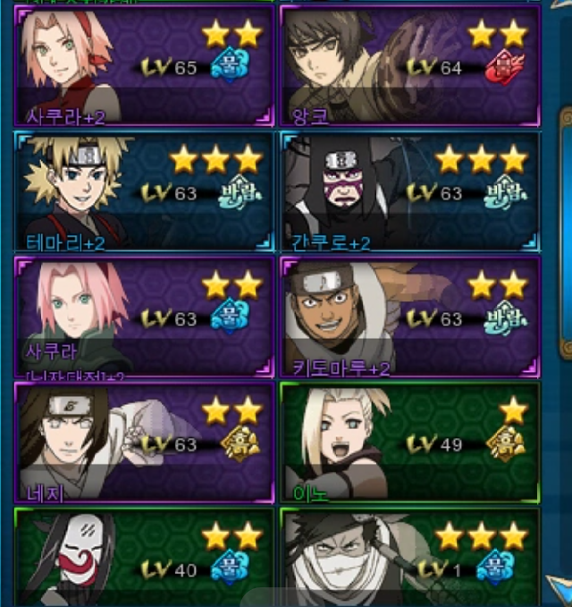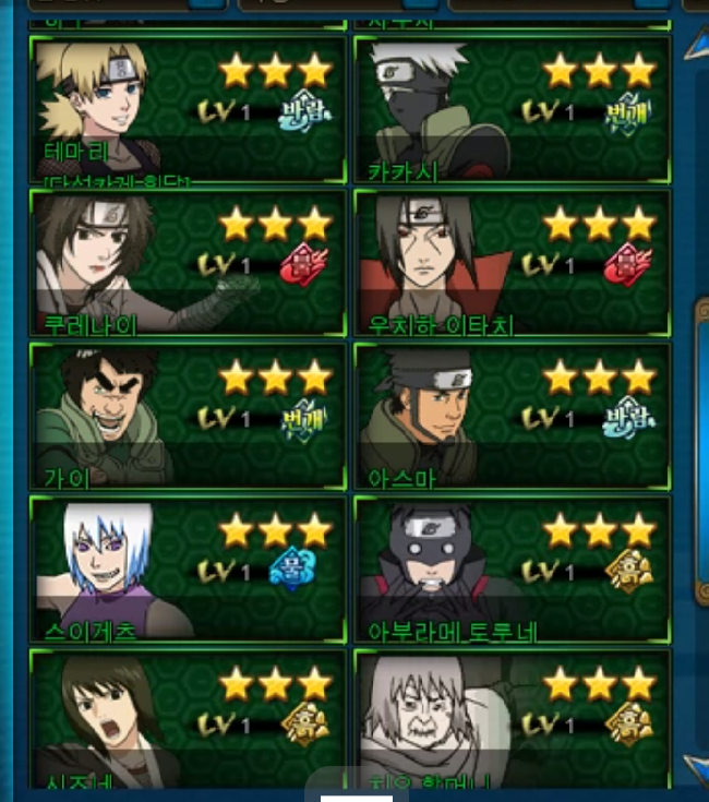 원래는 풍둔 나루토 이루카 가아라 사용중이었어요