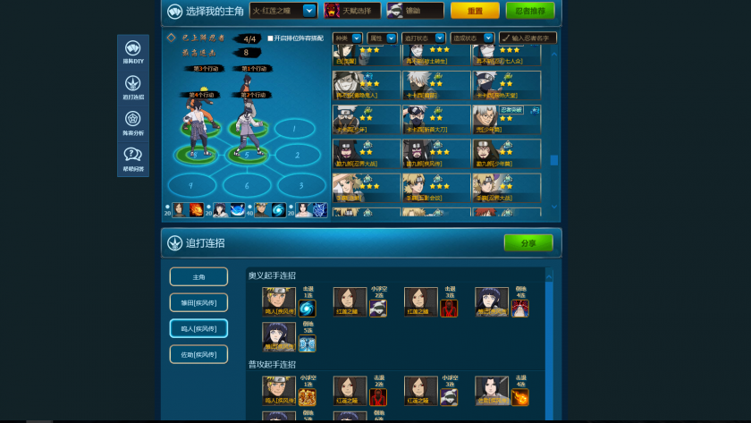 주인공 스킬8콤 나루토 평타 5콤 스킬 6콤 사스케 평타 7콤 (이콤보들 모두 봉혈이 들어갑니다.)이 들어갑니다 홍련일때 자주애용했던 덱입니다.