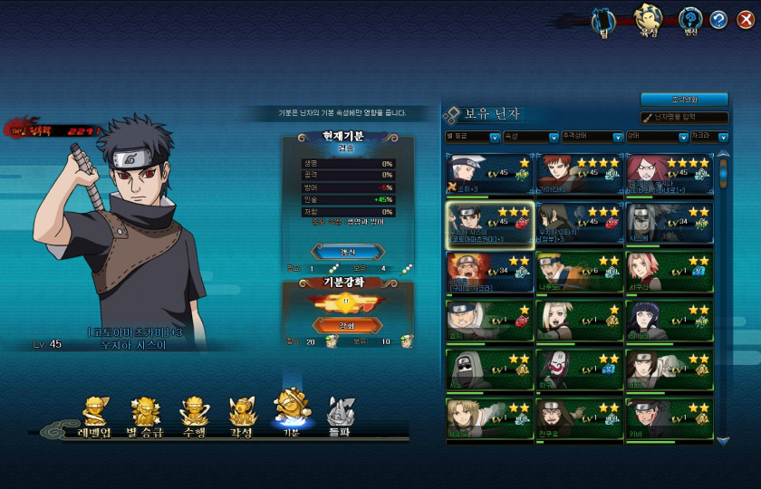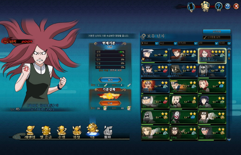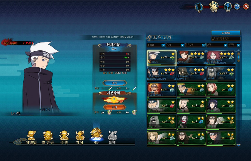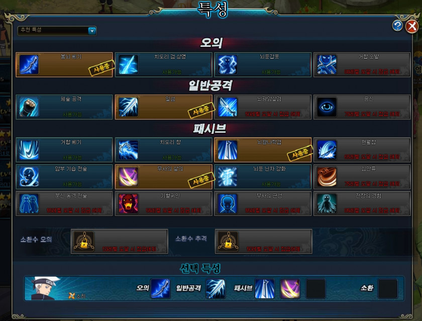 소환수는 아직없으시고, 기분은 캐릭터가셔서 공격,인술 잠재력보시고 더 높은거 플러스하시면됩니다