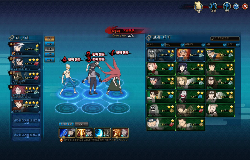 닌자들 오른쪽 숫자키보드 기준으로 어떻게 배치해야 가장 효율이 좋은지와 주인공특성,소환수,기분, 기타 세세한거좀 친절하게 알려주실분 계실까요?
