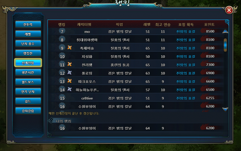 전체 16위로 ㅠㅠㅠㅠㅠㅠ칭호는 아깝게 놓쳣네여...흑
