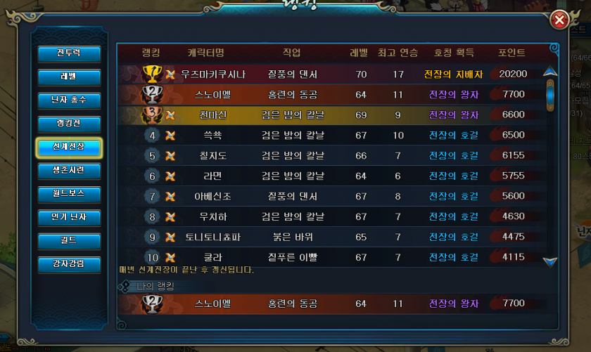 여름 휴가 갔다오니 랭크가 한참뒤로 밀려있네요;;;