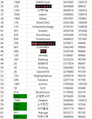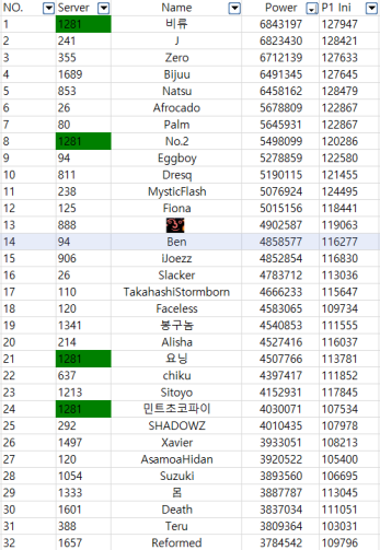 몇몇서버에 누락된 유저가 있을수도있고 본덱이 아닌사람도 많아서 선공수치는 소소한 차이가 있을 수 있습니다~