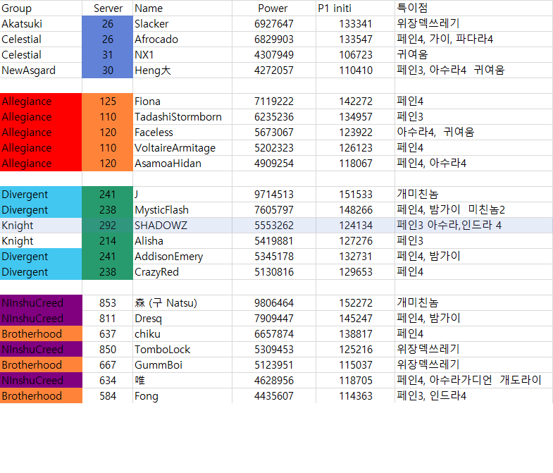 내일 업뎃후 저희(1281)쪽 유저 길드 정보(feat민초)