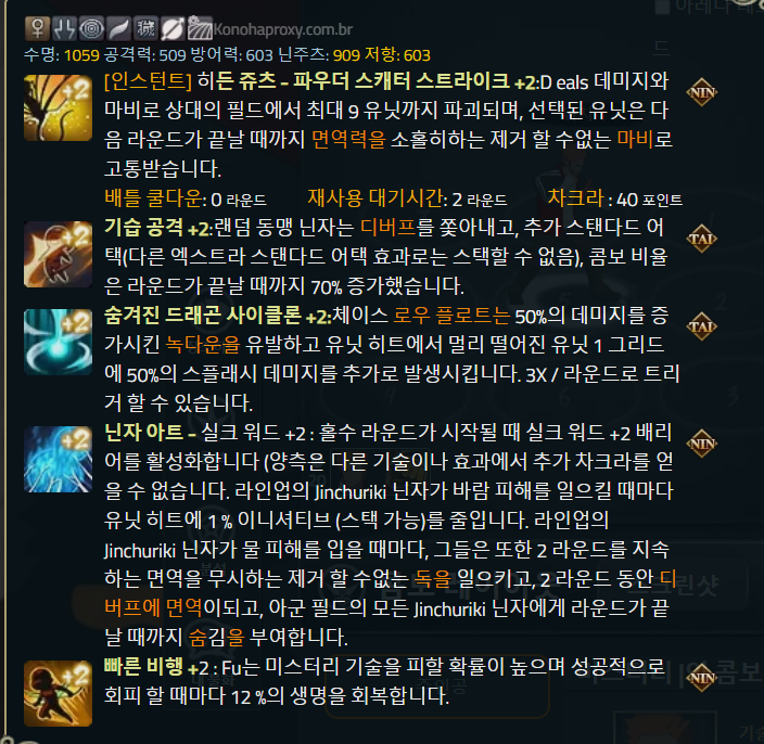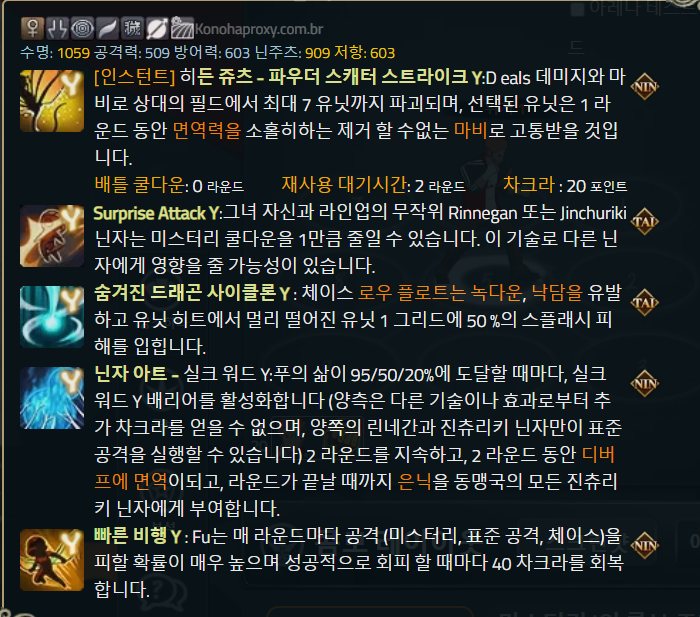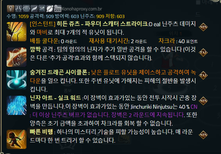 장판 효과: 양측 윤회안,인주력 닌자를 제외한 모든닌자 표준공격 불가
