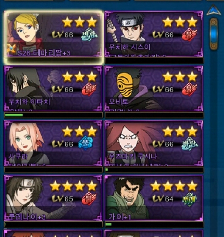 지금 쓰고있는건 풍둔에 암타치 시스이 오비토 쓰고있어요~ 다른 또 좋은조합있으면 알려주세요~~ 아직 66렙이라 스킬은다 안열렸어요~