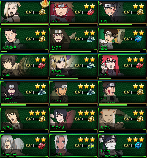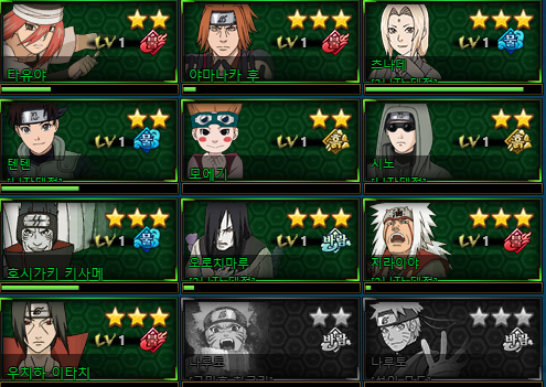 1. 뇌둔 + 이루카 + 키미마로 + 사스케 2. 뇌둔 + 이루카 + 가이 + 단조 둘다 써보시고 더 맘에 드는거 택하세요.