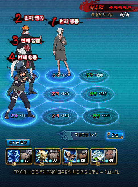 자동 했을 시에는, 차크라가 적게 소모되는 오의가 먼저 나가며, 방어오의(히나타)보다는 장판오의가 먼저,장판보다는 봉혈, 고정오의가 먼저 사용되기때문입니다~