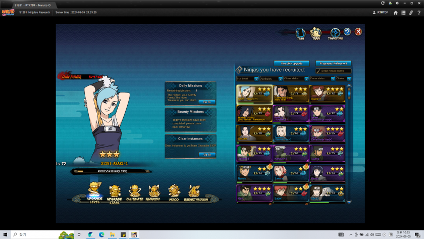 직업은 풍둔 수둔 토둔 화둔 이렇게 뚫었습니다 뇌둔 남았고