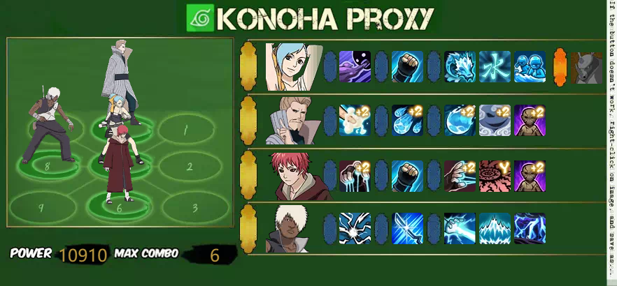 이것은 좋은 생각이다 또한 저렴하다. 그러나 초지는 치유 될 때 데미지가 증가하므로 더 나은 조정은 번개 주인공으로 전환하고 Anbu Special Assault Tactic 스킬을 사용하는 것입니다. 좋은 지원 카드: Torune 초보자에게 좋은 덱입니다. 사람들은 더 나은 닌자를 위해 조각을 수집하는 동안 이것을 사용할 수 있습니다. :)