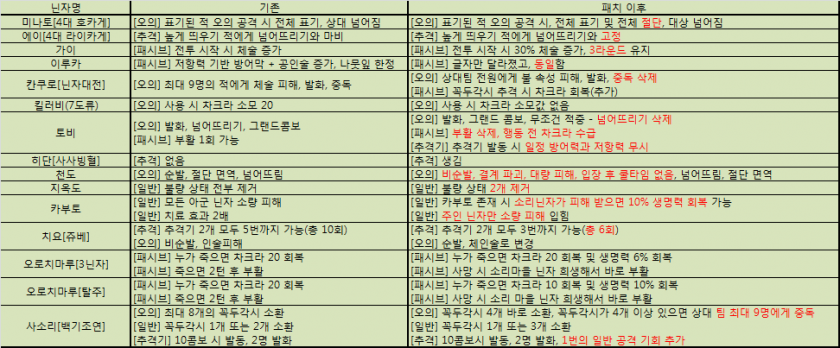 패치 이후 바뀐 닌자 오의, 패시브 등 간단 정리